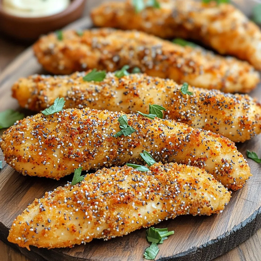 These ingredients combine to create a tasty and crispy dish. The chicken tenderloins are the star, soaking in buttermilk. This step makes them juicy and tender. The flour coats the chicken, giving it a nice base. Eggs help the breading stick, while panko and everything bagel seasoning add crunch and flavor.