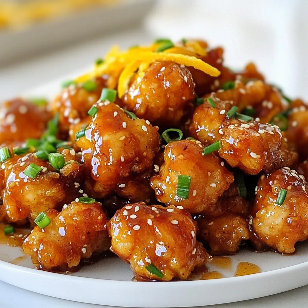 Deliciously crispy chicken bites coated in a sweet and tangy orange sauce, perfect for a quick meal or appetizer.
