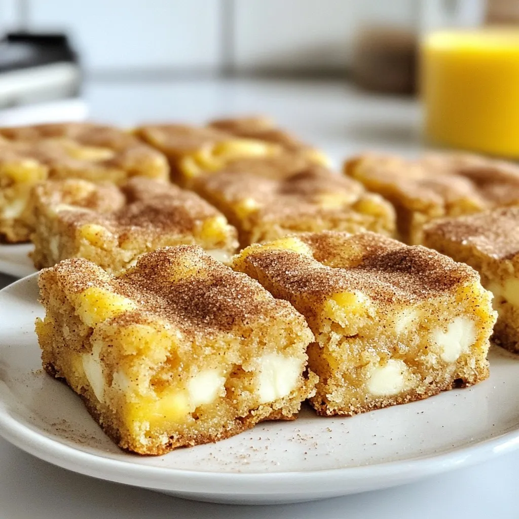 Deliciously soft and chewy bars with a snickerdoodle flavor, topped with cinnamon sugar.