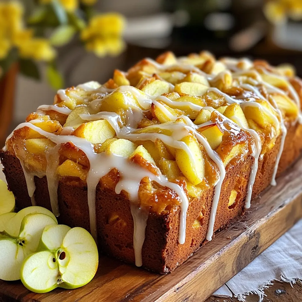 To make bakery style apple fritter bread, you'll need the following ingredients: - 3 cups all-purpose flour - 1 tablespoon baking powder - 1 teaspoon cinnamon - ½ teaspoon nutmeg - ½ teaspoon salt - ½ cup granulated sugar - ½ cup brown sugar, packed - ½ cup unsalted butter, melted - 1 large egg - 1 cup milk - 1 teaspoon vanilla extract - 2 cups apples, peeled and diced (preferably a mix of Granny Smith and Honeycrisp) - 1 cup powdered sugar (for glaze) - 2 tablespoons milk (for glaze) - ½ teaspoon vanilla extract (for glaze) Using a mix of Granny Smith and Honeycrisp apples gives great flavor. Granny Smith adds tartness, while Honeycrisp brings sweetness. Always peel and dice apples evenly for uniform baking. For flour, use the spoon and level method for accuracy. This way, your bread will rise well. Melted butter should be warm but not hot to avoid cooking the egg. If you're out of certain ingredients, you can still create a tasty bread. Use light brown sugar if you don't have dark brown sugar. You can swap in coconut oil for the unsalted butter for a dairy-free option. For a gluten-free version, try a 1:1 gluten-free flour blend. If you want a vegan bread, use flax eggs instead of the large egg and plant-based milk. 1. Start by preheating your oven to 350°F (175°C). Grease a 9x5 inch loaf pan well. This step helps the bread to come out easily. 2. In a large bowl, whisk together 3 cups of all-purpose flour, 1 tablespoon baking powder, 1 teaspoon cinnamon, ½ teaspoon nutmeg, and ½ teaspoon salt. Mix them well. 3. In another bowl, combine ½ cup granulated sugar, ½ cup brown sugar, ½ cup melted unsalted butter, 1 large egg, 1 cup milk, and 1 teaspoon vanilla extract. Stir this mixture until smooth. 4. Slowly add the wet mix to the dry mix. Stir gently until just combined. Be careful not to overmix, as this can affect the bread's texture. 5. Now, fold in 2 cups of peeled and diced apples. I suggest using a mix of Granny Smith and Honeycrisp for great flavor. 6. Pour the batter into your prepared loaf pan. Use a spatula to smooth the top evenly. 7. Place the loaf pan in your preheated oven. Bake for 55-65 minutes. To check for doneness, insert a toothpick into the center; it should come out clean. 8. If the top browns too much, cover it with aluminum foil for the last 10-15 minutes. This helps it bake evenly without burning. 9. When the bread is done, take it out of the oven. Let it cool in the pan for about 10 minutes. 10. After that, transfer the bread to a wire rack to cool completely. This step is key for the best texture. 11. While it cools, make the glaze. In a small bowl, whisk together 1 cup powdered sugar, 2 tablespoons milk, and ½ teaspoon vanilla extract until smooth. 12. Once the bread is cool, drizzle the glaze over the top. Then slice and serve! Enjoy the sweet, fruity goodness. To get that soft and fluffy texture, do not overmix your batter. Mix until just combined. This helps keep the bread light. Use room temperature ingredients like eggs and milk for even mixing. The apples should be diced small for even distribution. For a flavor boost, try adding a splash of lemon juice to your apples. This brightens the taste. You can also mix in some chopped nuts for crunch. A pinch of ginger or allspice can add warmth to the aroma. One common mistake is skipping the greasing of the loaf pan. This can lead to sticking. Another is not checking the bread for doneness. Use a toothpick to test if it comes out clean. Lastly, don’t rush the cooling process. Let it cool fully before glazing for the best flavor. {{image_2}} You can switch fruits in this recipe to add variety. Try using pears, peaches, or berries instead of apples. Each fruit brings its own flavor and texture. For example, pears add a soft, sweet taste. Berries give a burst of juicy flavor. Remember to adjust the sugar if your fruit is sweeter or more tart than apples. Mixing flavors can make your apple fritter bread even more exciting. Add spices like cardamom or ginger for warmth. You can also mix in nuts like walnuts or pecans for crunch. If you love chocolate, fold in some mini chocolate chips. This adds a rich taste that pairs well with fruit. Want a lighter version? You can make a few simple swaps. Use whole wheat flour instead of all-purpose flour for more fiber. You can also reduce the sugar by using natural sweeteners like honey or maple syrup. For a dairy-free option, replace milk with almond or oat milk. These changes keep the bread tasty while making it a bit healthier. To keep your apple fritter bread fresh, store it in an airtight container. This helps prevent it from drying out. You can also wrap it tightly in plastic wrap. Keep it at room temperature for up to three days. If you want to keep it longer, the fridge is a good option. Just remember, refrigeration may change the texture slightly. Freezing is a great way to save your apple fritter bread. Start by letting it cool completely. Then, slice it into individual pieces. Wrap each slice in plastic wrap. Place the wrapped slices in a freezer-safe bag. Label it with the date. You can freeze it for up to three months. When you’re ready to eat, just thaw it in the fridge overnight. Reheat the apple fritter bread to enjoy it warm. You can use a toaster oven or a microwave. For the toaster oven, heat it at 350°F for about 10 minutes. If you use the microwave, warm a slice for 15 to 20 seconds. Be careful not to overheat it, as it can dry out. Enjoy your treat with a fresh glaze if you like! Apple fritter bread is a sweet, moist loaf made with apples. It tastes like apple fritters but is easier to bake. You mix diced apples into a rich batter, then bake it until golden. The bread is often topped with a sweet glaze for extra flavor. Yes, you can use different apples. I recommend using a mix of tart and sweet apples. Granny Smith and Honeycrisp work well together. You can also try Fuji or Gala apples for a sweeter taste. Each apple adds its unique fla