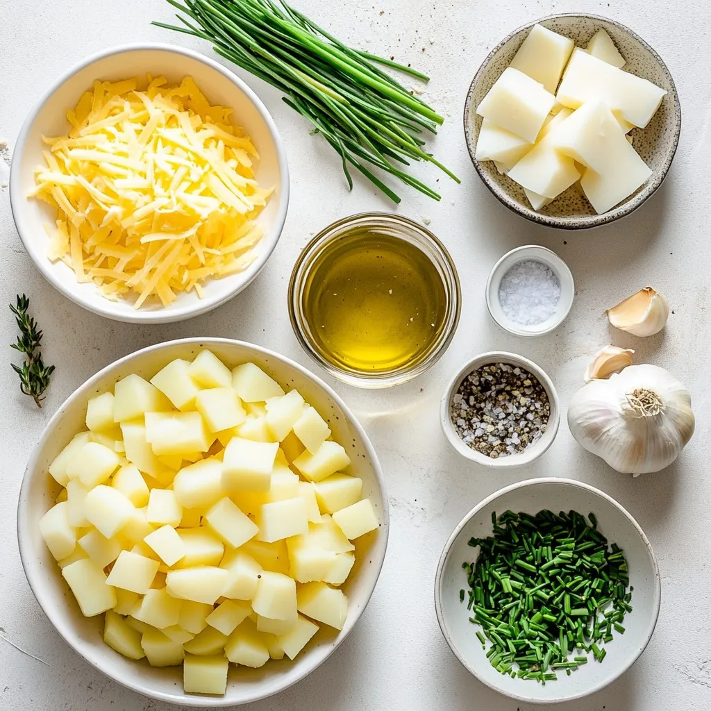 Each ingredient plays a key role in building flavor. The russet potatoes give the soup its creamy base. Onion and garlic add depth and warmth. Heavy cream and cheddar cheese create a rich, smooth texture. Fresh herbs, thyme and rosemary, bring a hint of earthiness. The olive oil helps sauté the veggies and enhances the taste. Salt and pepper finish off the dish perfectly. Don’t forget fresh chives for a pop of color!