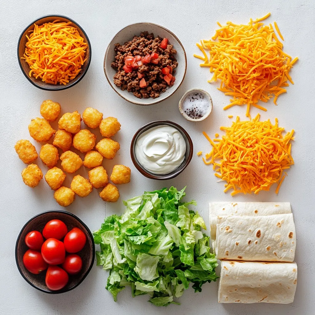 For Cheesy Tater Tot Burritos, you need to gather a few key ingredients. These items come together to create a tasty and satisfying meal. Here’s your list: