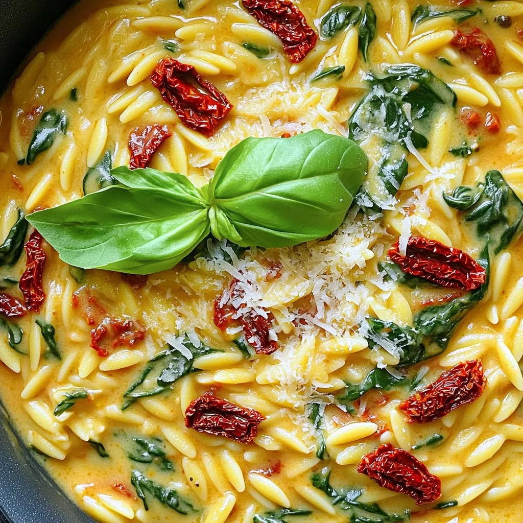 Orzo pasta is a small, rice-shaped pasta. It cooks quickly and absorbs flavors well. Sun-dried tomatoes add a rich, tangy taste. They give the dish a bold flavor. Heavy cream makes the orzo creamy and smooth. It helps bind all the flavors together.