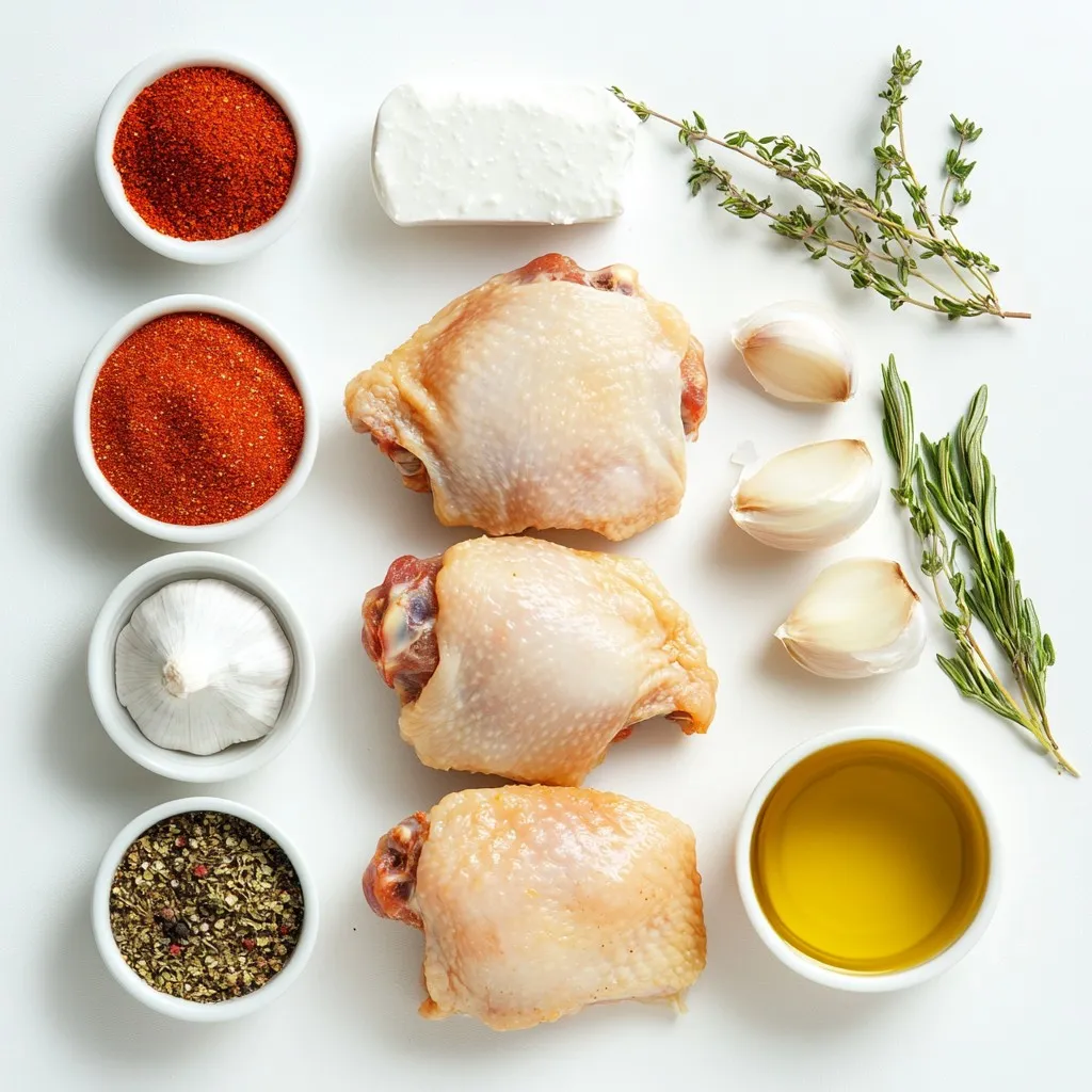 Gather these ingredients before you start cooking. The chicken thighs give the dish a rich flavor. Heavy cream makes it creamy and smooth. Chicken broth adds depth and moisture. These three main ingredients work together perfectly.