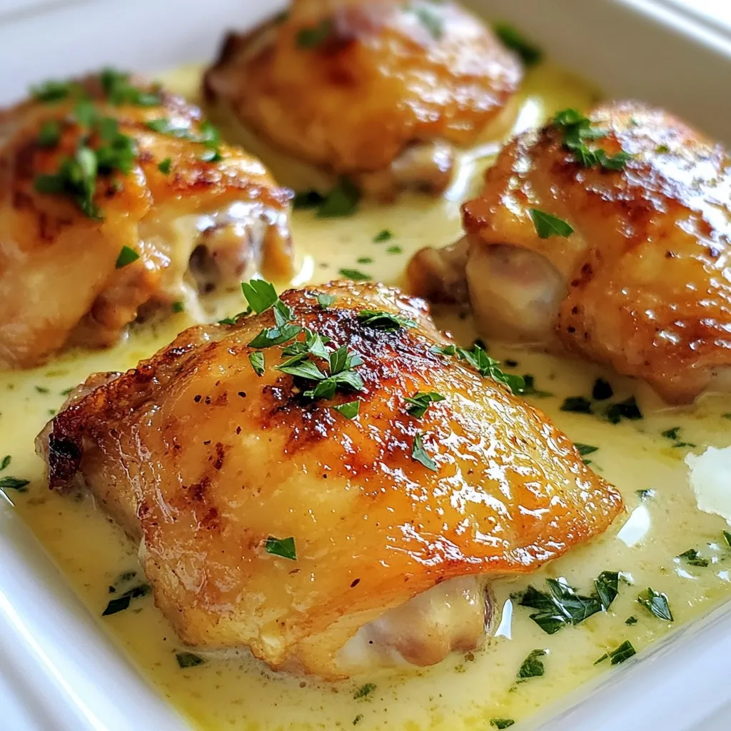 To impress your guests, use a large platter for presentation. Arrange the chicken thighs with the creamy sauce on top. Sprinkle fresh parsley for a bright finish. This simple touch makes the meal feel special and inviting.