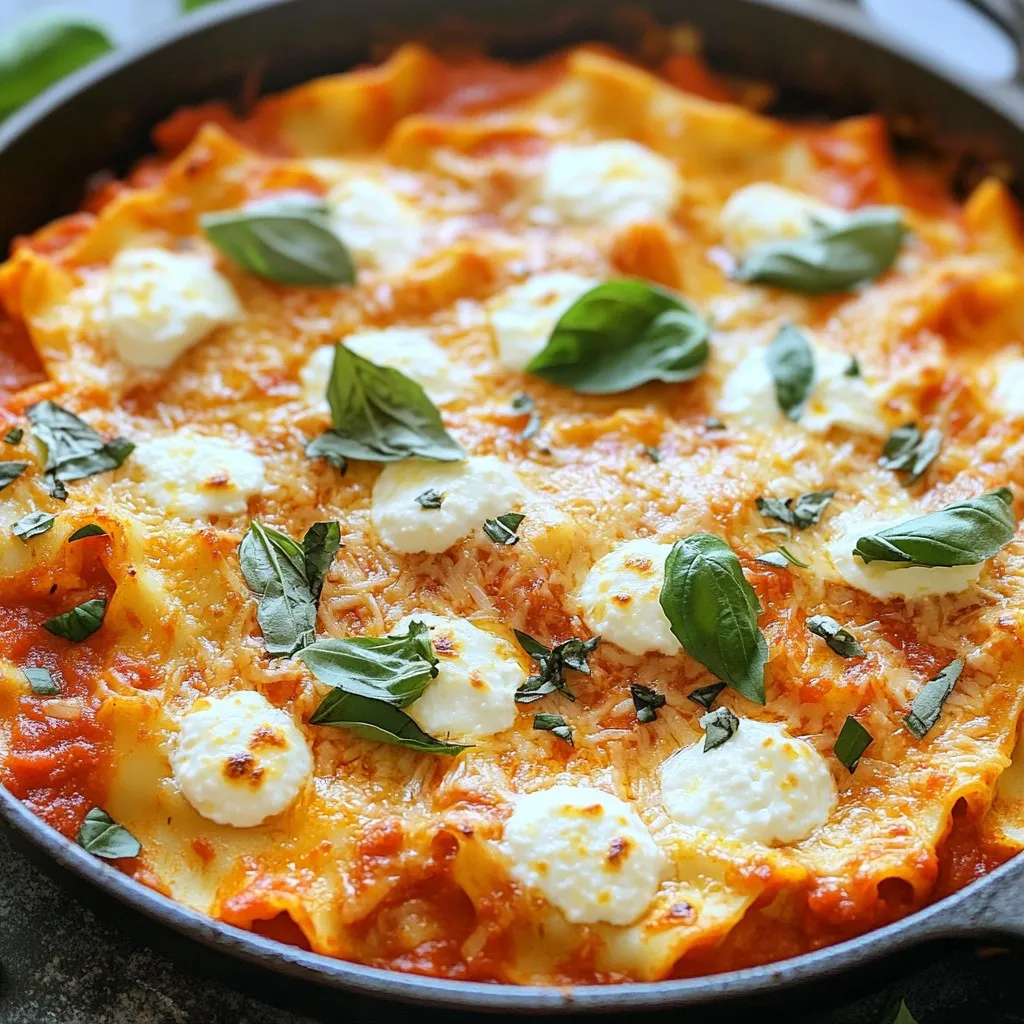 - 12 lasagna noodles, broken into pieces - 2 cups roasted red peppers (pureed) - 1 1/2 cups ricotta cheese - 1 cup mozzarella cheese - 1/2 cup Parmesan cheese - Olive oil - Minced garlic - Dried basil - Dried oregano - Salt and pepper - Fresh basil for garnish Gather these ingredients before you start cooking. Fresh roasted red peppers add great flavor. You can buy them jarred or make your own. The creamy ricotta and melted mozzarella create a rich texture. The Parmesan adds a nice salty bite. Use dried herbs like basil and oregano to boost flavor without extra prep. Olive oil helps sauté the garlic and makes the dish rich. Don't forget salt and pepper for seasoning. Garnish with fresh basil for a pop of color and freshness. Enjoy the process of gathering these ingredients; it sets the stage for a delightful meal! To start, I heat 1 tablespoon of olive oil in a large skillet over medium heat. I add 3 cloves of minced garlic and sauté for about 1 minute. I want the garlic to be fragrant, but I must be careful not to burn it. Next, I pour in 2 cups of marinara sauce and 2 cups of pureed roasted red peppers. I stir well to combine these flavors and let the sauce simmer for about 5 minutes. This step builds a rich base for the lasagna. In a separate bowl, I mix 1 1/2 cups of ricotta cheese with 1 teaspoon of dried basil, 1 teaspoon of oregano, salt, and pepper. I ensure this mixture is smooth and creamy. Then, I break 12 lasagna noodles into pieces and add them to the sauce mixture in the skillet. I stir to coat each piece well. To help cook the noodles, I pour in 1/2 cup of water or chicken broth for added flavor. I cover the skillet with a lid and let it simmer for about 15-20 minutes. I check and stir occasionally until the noodles are al dente. Once the noodles are cooked, I drop spoonfuls of the ricotta mixture over the top. I gently fold it in, mixing it with the noodles and sauce. Then, I sprinkle 1 cup of grated mozzarella cheese and 1/2 cup of grated Parmesan cheese evenly over the top. I cover the skillet again and let it cook for an additional 5-7 minutes until the cheese melts and bubbles. After that, I remove it from heat and let it cool for a couple of minutes. To finish, I garnish with fresh basil leaves for a pop of color and flavor. How to avoid overcooking noodles To avoid overcooking the noodles, check them often while they cook. Stir every few minutes to ensure even cooking. Remember, they will continue cooking a bit after you remove the skillet from heat. Aim for al dente, so they have a nice bite. Best uses for leftovers Leftovers can be a great treat! Store them in an airtight container in the fridge. You can reheat them for lunch or dinner. The flavors will meld even more, making them taste better the next day. You can also turn leftovers into a tasty pasta bake by adding more cheese on top and baking until golden. Presentation tips for serving from the skillet Serving from the skillet looks rustic and inviting. Don’t worry about transferring to a plate. Just garnish with fresh basil leaves on top for color. You can also sprinkle extra cheese for a nice touch. This makes it feel special and homemade. Extras to enhance flavor A drizzle of olive oil on top adds richness and depth. You can also add a dash of red pepper flakes for a kick. A sprinkle of fresh herbs, like parsley or thyme, can elevate the dish too. These little touches make a big difference in flavor! {{image_2}} You can change up the cheese for a new twist. Try goat cheese for a tangy flavor. It melts well and adds creaminess. You can also mix in some vegetables. Spinach works great for color and nutrition. Sauté mushrooms for an earthy taste that complements the sauce. If you need a gluten-free version, use gluten-free lasagna noodles. They are easy to find in stores. For vegan options, swap the cheeses. Use cashew cheese or tofu for a creamy texture. Nutritional yeast can add a cheesy flavor without dairy. To store leftovers of your creamy roasted red pepper lasagna skillet, let it cool first. Then, place it in an airtight container. This keeps the flavors fresh. You can also use glass containers or plastic ones with tight lids. Make sure to label the container with the date. This way, you know when to eat it. When reheating, the best way is using the stove. Place the skillet over low heat. Stir often to avoid sticking. You can add a splash of water or broth to keep it moist. If you prefer the microwave, cover the dish with a damp paper towel. This helps keep the lasagna from drying out. Heat in short intervals until warm. Enjoy every cheesy bite! Can I make this dish ahead of time? Yes, you can! Just prepare the lasagna skillet and store it in the fridge. Cover it well and eat it within two days. When ready to serve, heat it on the stove or in the oven. This way, you save time and enjoy a quick meal. How do I make homemade roasted red peppers? Making roasted red peppers is easy! Start by preheating your oven to 450°F (230°C). Slice fresh red peppers in half and remove the seeds. Place them skin side up on a baking sheet. Roast for 20-25 minutes until the skins are blackened. After roasting, put them in a bowl and cover it to let them steam. Once cool, peel off the skins. Now, you have tasty roasted red peppers for your dish! What to do if the sauce is too thick? If your sauce is thick, add a little water or chicken broth. Stir it well to combine. This will help loosen the sauce and make it creamy. Always taste as you go to ensure the flavor stays great. How to fix overcooked noodles? If your noodles are overcooked, don't worry! You can try adding a splash of broth or water to the skillet. Gently stir to help them absorb moisture. This may soften them a bit. If they are too mushy, consider adding some fresh veggies for extra texture. In this blog post, we explored how to make a delicious lasagna with roasted red peppers. We covered each step, from preparing the sauce to final assembly, ensuring pe