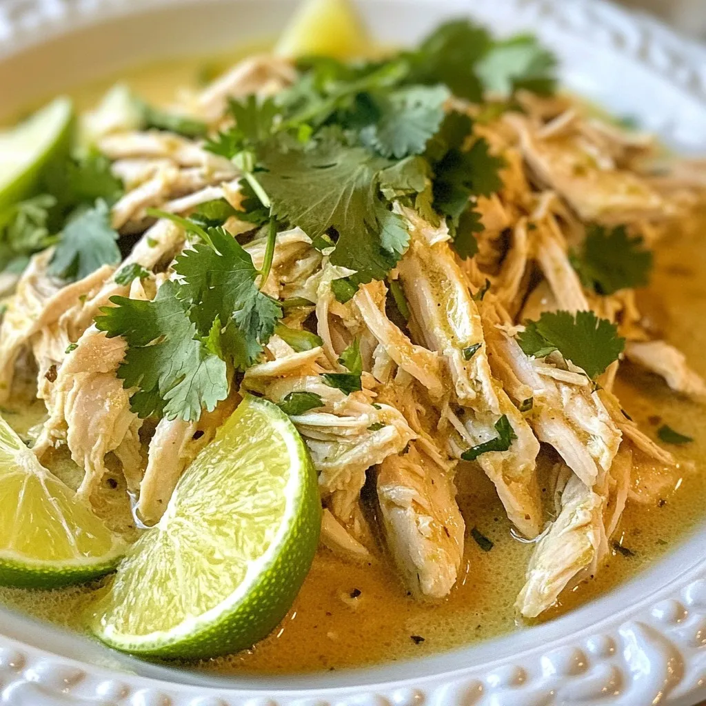 When the chicken is done, use two forks to shred it right in the crockpot. Mix the chicken with the sauce. This helps soak up all the rich flavor. Serve the coconut lime chicken on plates. Garnish with fresh cilantro and add lime wedges for extra zing. Enjoy your delightful meal!
