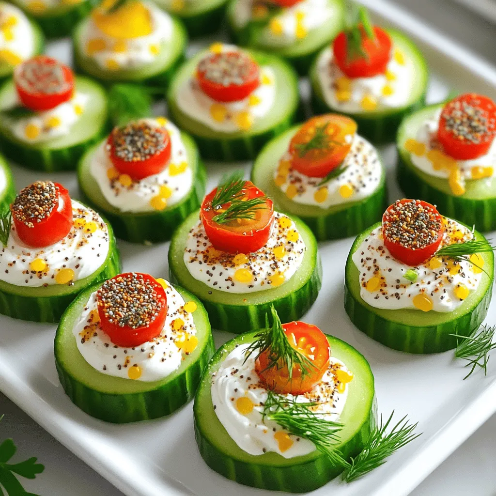 Arrange the cucumber bites on a colorful platter. Add some fresh herbs around them for a pop of green. This makes your dish look extra special.