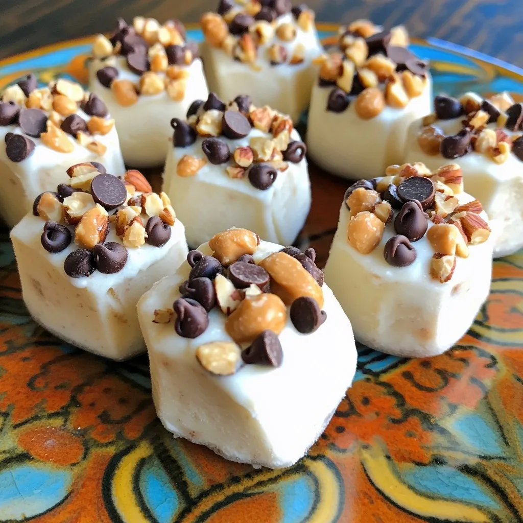 To make your bites even more fun, consider adding toppings. Mini chocolate chips give a sweet crunch. They melt slightly when frozen, adding a delightful surprise. Alternatively, chopped nuts can offer a satisfying bite and extra nutrition. You can mix and match these toppings based on your taste.