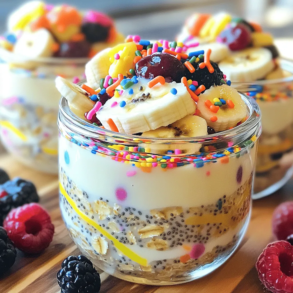 Want to mix things up? Try making chocolate birthday cake oats! Just add cocoa powder to your mix for a rich, chocolatey flavor. You can also puree your favorite fruits and mix them in for a fruity twist. This adds natural sweetness and extra nutrients.