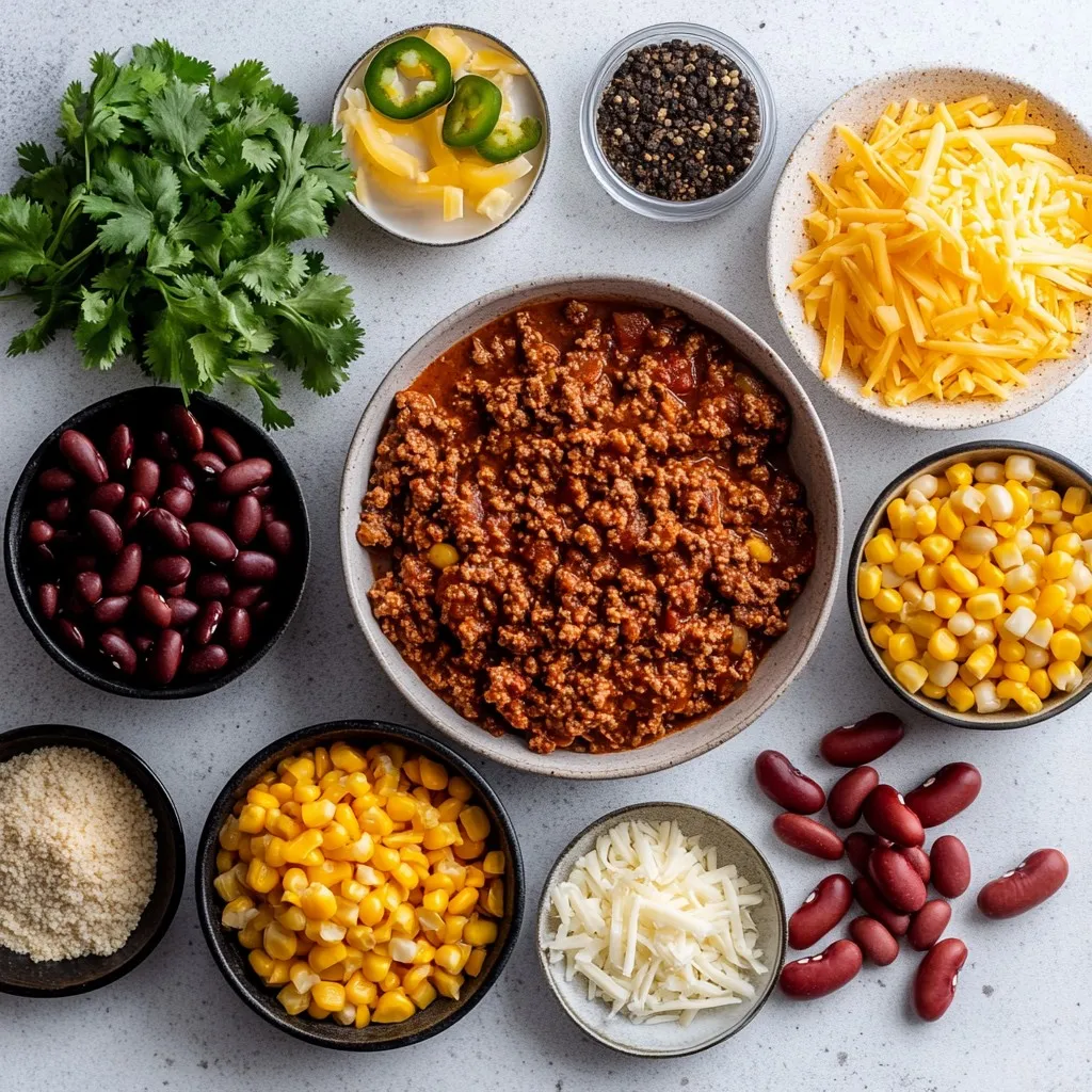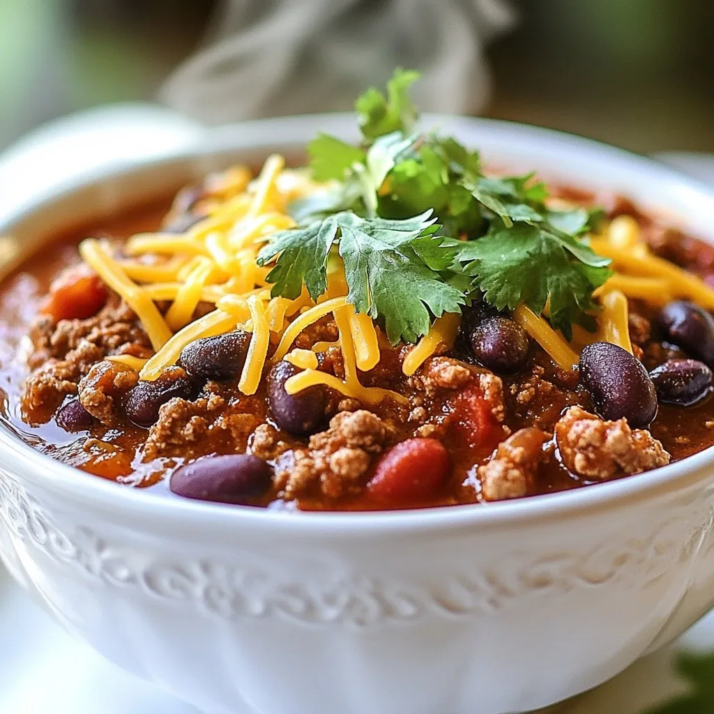 For those who like heat, I add jalapeños. They give a nice kick. If you prefer a milder chili, leave them out. I also add broth for a rich base and corn for sweetness. To finish, I like to garnish with fresh cilantro and shredded cheese. This adds color and freshness to each bowl.