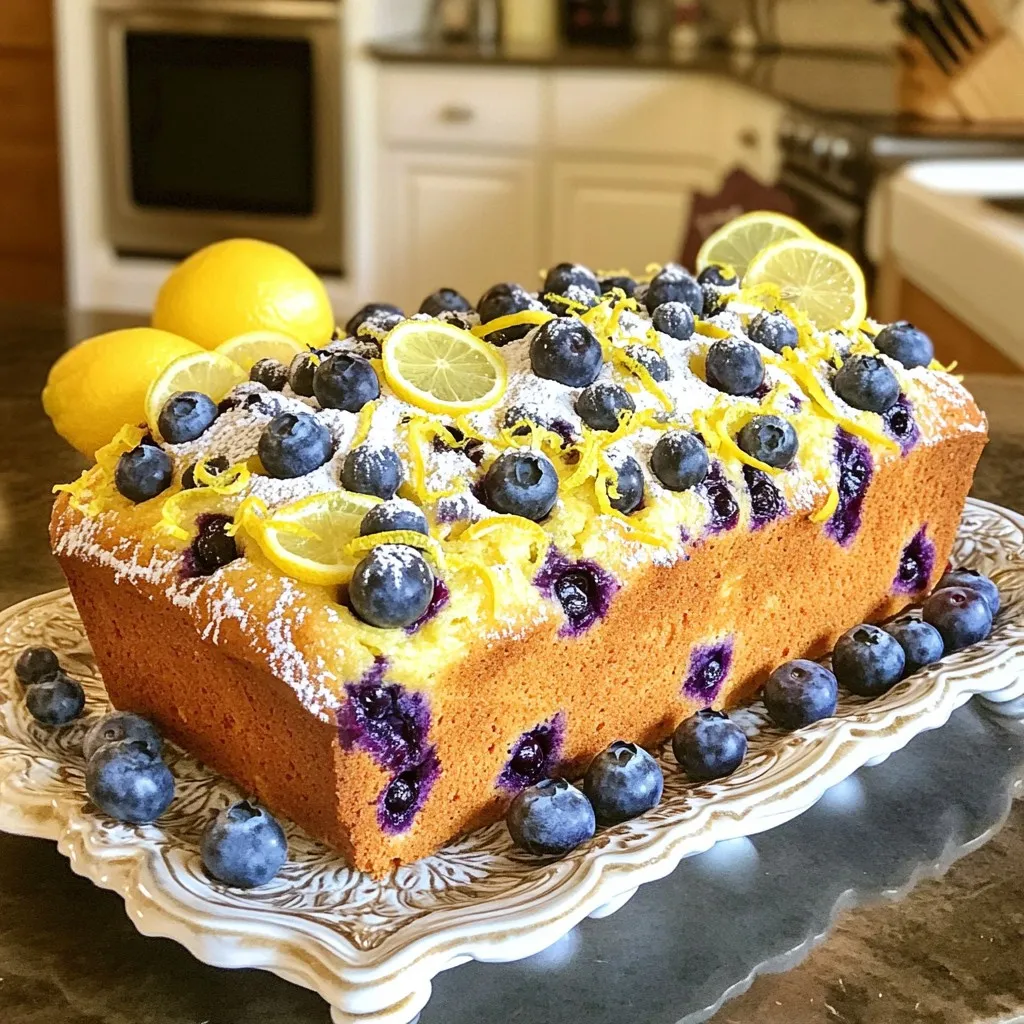 For a beautiful presentation, slice the loaf and serve on a nice platter. You can garnish it with fresh blueberries and lemon slices. This adds color and freshness.