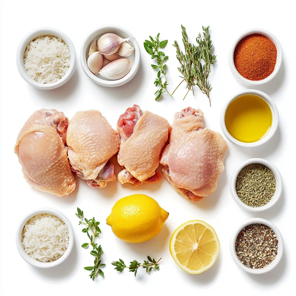 Gathering the right ingredients is key for this dish. Start with boneless chicken thighs. They stay juicy and tender. Next, grab long-grain rice to soak up all the flavors. Using chicken broth instead of water adds depth to the rice.