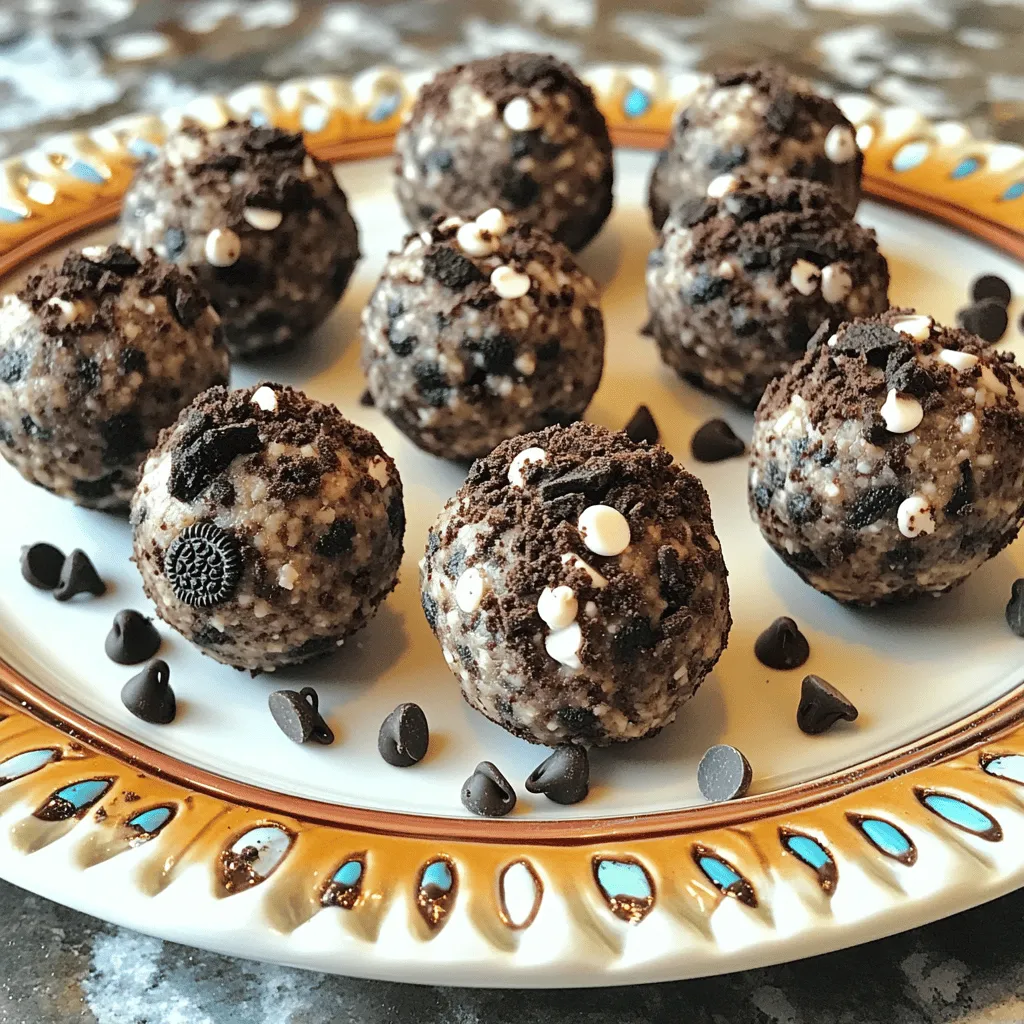 When I make No-Bake Oreo Protein Balls, I love the mix of flavors and textures. The crushed Oreo cookies give a rich taste. Rolled oats add a nice chew. Protein powder boosts the nutrition. Peanut butter or almond butter makes it creamy and filling. Honey or maple syrup adds just the right sweetness. Mini chocolate chips are a delightful surprise. A pinch of sea salt helps balance all the flavors.