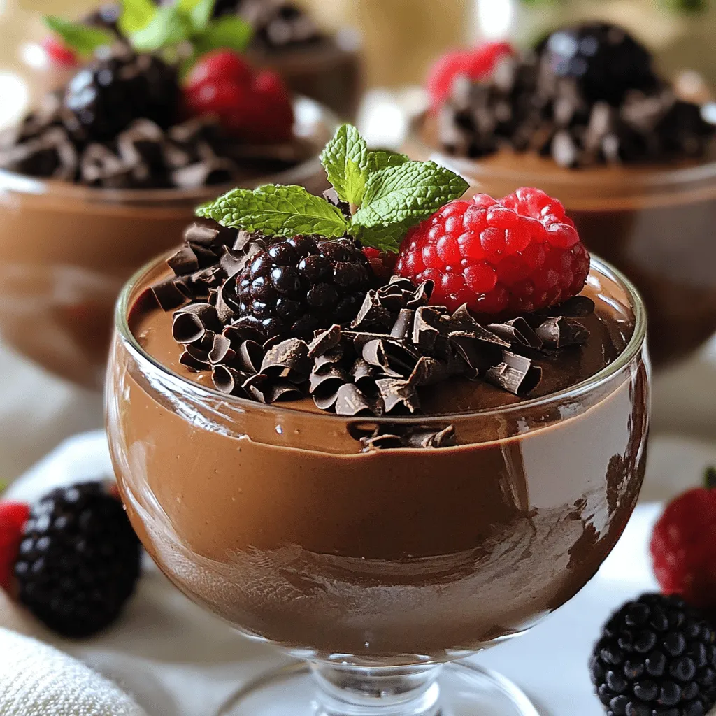 For the garnish, dark chocolate shavings add a nice touch. Fresh berries add color and a fruity flavor. Both options make the mousse look fancy and fun. With these ingredients, you can create a delicious and healthy dessert that everyone will love!