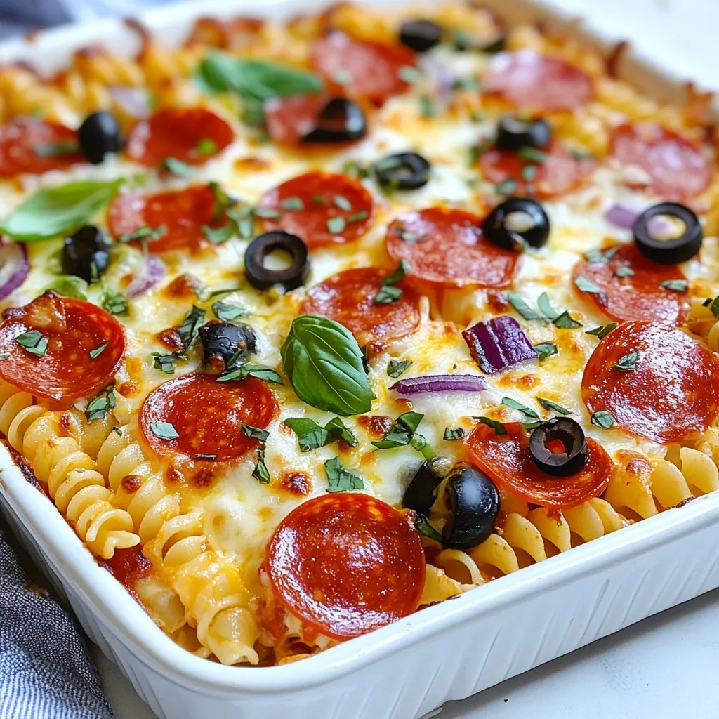 A delicious and hearty pasta bake with cheesy goodness and pizza flavors.