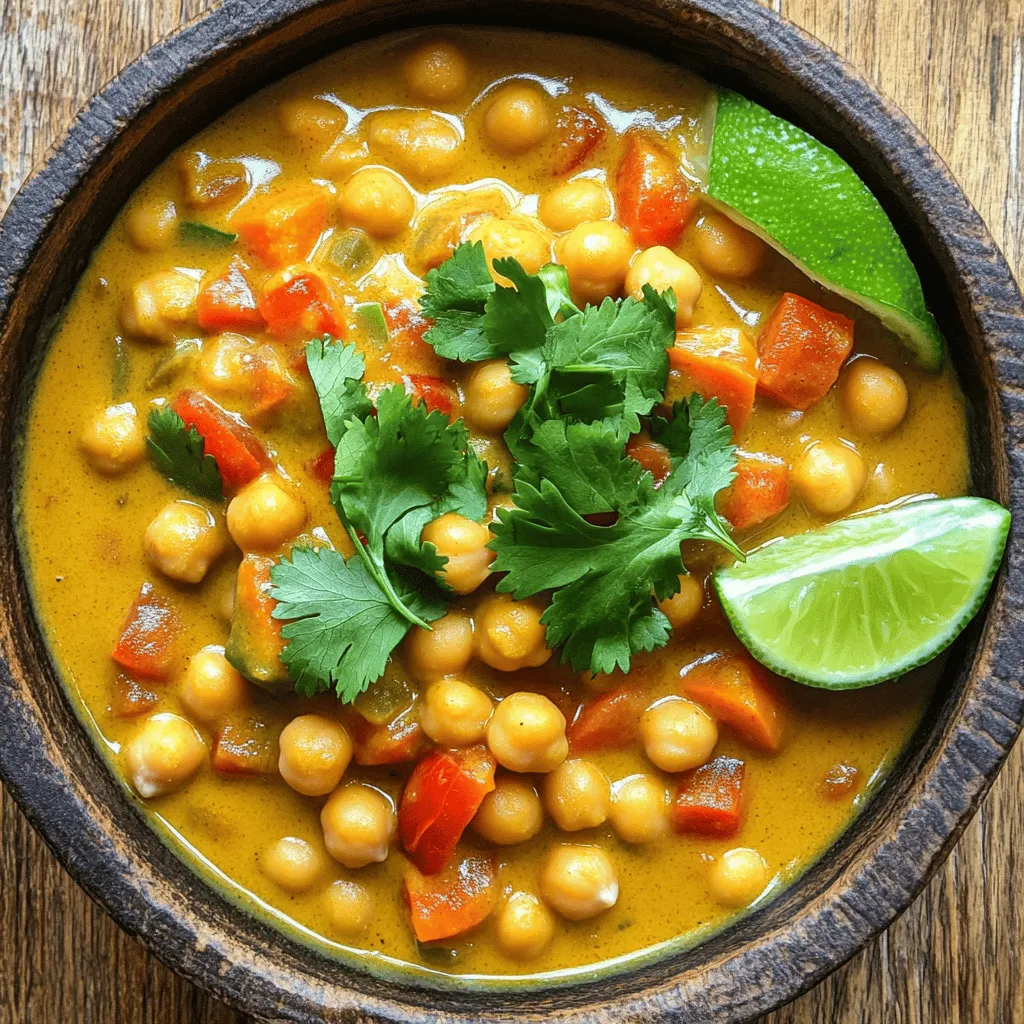 - 2 cans (15 oz each) chickpeas, drained and rinsed - 1 can (14 oz) coconut milk - 1 can (14 oz) diced tomatoes Chickpeas are the star of this stew. They give protein and a nice texture. Coconut milk adds creaminess and a rich flavor. Diced tomatoes bring acidity and sweetness, balancing the dish. - 1 tablespoon curry powder - 1 teaspoon ground cumin - 1/2 teaspoon turmeric - 1/2 teaspoon chili powder (adjust for spice preference) - Salt and pepper to taste Curry powder gives the stew its main flavor. Ground cumin adds a warm, earthy note. Turmeric adds color and health benefits. Chili powder can add heat based on your taste. - 1 large onion, diced - 2 cloves garlic, minced - 1-inch piece of ginger, grated - 2 carrots, chopped - 1 red bell pepper, diced - 1 tablespoon olive oil - Fresh cilantro, for garnish - Juice of 1 lime Onions, garlic, and ginger create a great base. They add depth and aroma. Carrots and red bell pepper bring sweetness and crunch. Olive oil helps with sautéing and adds flavor. Fresh cilantro and lime juice brighten the stew and enhance its taste. To start, grab a skillet. Heat the olive oil over medium heat. Add the diced onion and sauté for 3-4 minutes. You want them to look translucent and soft. Next, stir in the minced garlic and grated ginger. Cook for about a minute, just until you smell that lovely aroma. Once that’s done, transfer the mixture to your slow cooker. This adds a savory base to your stew. Now it’s time to add the rest of the ingredients. Open the cans of chickpeas, diced tomatoes, and coconut milk. Drain and rinse the chickpeas before adding them to the pot. Pour in the vegetable broth, too. Next, toss in the carrots and red bell pepper. These will add color and crunch to your dish. Then, mix in the curry powder, ground cumin, turmeric, and chili powder. Make sure to stir everything well. Season with salt and pepper to taste. Set your slow cooker to low or high, depending on your schedule. If you set it to low, cook for 6-8 hours. For high, cook it for 4-5 hours. Check the veggies for tenderness before serving. Once cooked, stir in the juice of one lime. This adds a fresh zing to your stew. Adjust any seasonings as needed. Now, it's ready to enjoy! To make your slow cooker coconut curry chickpea stew pop with flavor, start with seasoning. Use salt and pepper early in the process. This draws out the taste from the ingredients. I like to add lime juice at the end. It brightens the dish and adds a fresh zing. Just squeeze one lime over the stew before serving. You’ll notice the difference! Checking for doneness is key. After cooking, the vegetables should be tender, but not mushy. If they are still firm, give them extra time. For spice lovers, adjust the chili powder to your liking. Start with half a teaspoon for mild heat, then add more if you want a kick. Remember, you can always add spice, but you can’t take it away! Serve your stew with rice or naan for a complete meal. Both soak up the rich coconut curry sauce nicely. Top your stew with fresh cilantro for a pop of color and taste. The bright green herb adds freshness and looks great on the plate. Enjoy your delicious meal and share it with friends! {{image_2}} You can swap out chickpeas for other beans like black beans or lentils. This change keeps the stew filling and tasty. You can also use any vegetables you have on hand. Try adding sweet potatoes, zucchini, or spinach for a fresh twist. If you want to avoid coconut milk, consider using almond milk or cashew cream. These options can give a different flavor while keeping it creamy. Just note that the taste will change a bit. Spices can make a big difference in this stew. You can add more curry powder or a pinch of cinnamon for warmth. If you like heat, try adding cayenne pepper. It will give your stew a nice kick. Herbs also boost the taste. Fresh basil or mint can add a bright flavor. You can stir them in just before serving for the best effect. This stew is naturally gluten-free, making it a great choice for anyone with gluten issues. Always check your broth and other packaged items to ensure they are gluten-free. For Whole30 or Paleo diets, skip the chickpeas and use more veggies. You can also add in roasted chicken or shrimp for protein. This keeps the meal hearty while following the rules of these diets. To keep your stew fresh, use airtight containers. Glass or plastic containers work well. Store the stew in the fridge. It remains good for about 3 to 5 days. Be sure to let it cool down before sealing. This helps prevent moisture build-up. If you want to save some for later, freezing is a great option. Divide the stew into smaller portions. Use freezer-safe bags or containers. Remove as much air as you can to prevent freezer burn. It can stay frozen for up to 3 months. When you are ready to eat, thaw it overnight in the fridge. For quick reheating, use the microwave or stovetop. Stir often to ensure it heats evenly. To reheat without losing flavor, add a splash of water or broth. This keeps the stew moist and tasty. Heat on low to avoid burning. Stir occasionally. Enjoy leftovers with rice or naan for a complete meal. You can also top it with fresh cilantro for extra flavor. Each bite will be just as delicious as the first! Yes, you can make this stew ahead of time. It tastes even better the next day. To meal prep, follow these tips: - Cook in bulk: Prepare a double batch and store half for later. - Cool before storing: Let the stew cool down before putting it in containers. - Use airtight containers: This keeps the stew fresh and prevents spills. - Label your containers: Write the date so you know when to use it. This stew pairs well with several side dishes. Here are some ideas: - Rice: White or brown rice soaks up the stew's flavors. - Naan: Soft naan bread is great for dipping. - Quinoa: A healthy, grain option that adds texture. - Salad: A fresh green salad balances the rich stew. Yes, this recipe is great for meal prep. He