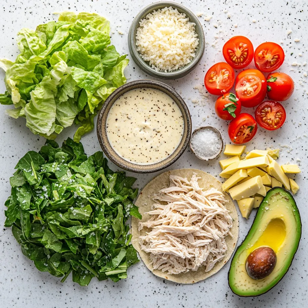 These ingredients make the Smash Chicken Caesar Tacos simple yet tasty. You start with cooked chicken, which gives a nice base. I prefer using shredded chicken for a better mix with the dressing. The Caesar dressing adds a creamy flavor that pairs well with the chicken.