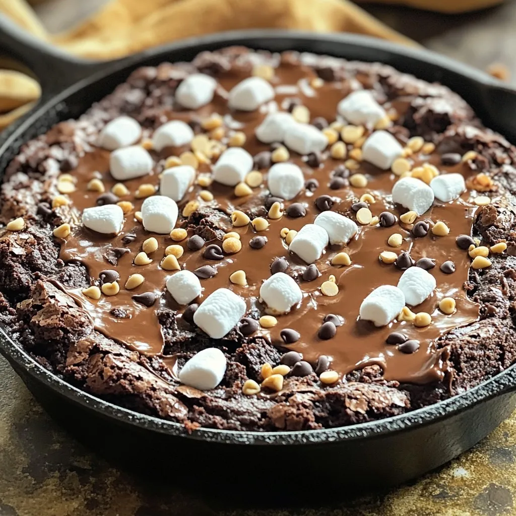 - 1 cup unsalted butter, melted - 1 cup granulated sugar - 1 cup packed brown sugar - 4 large eggs - 1 teaspoon vanilla extract - 1 cup all-purpose flour - 1 cup unsweetened cocoa powder - 1 teaspoon baking powder - 1/2 teaspoon salt - 1 cup semi-sweet chocolate chips - 1 cup mini marshmallows - 1 cup graham cracker crumbs For this recipe, I use unsalted butter. It gives a rich flavor without extra salt. Granulated sugar and brown sugar add the right sweetness and moisture. Choose high-quality cocoa powder for a deep chocolate taste. Fresh eggs are key for a good rise. Use all-purpose flour for the best texture. - Additional chocolate chips - Scoop of vanilla ice cream - Crushed graham crackers You can add more chocolate chips on top for extra sweetness. A scoop of vanilla ice cream makes it even better, especially when warm. Crushed graham crackers on top add a nice crunch. These toppings help create that classic s'mores vibe! First, preheat your oven to 350°F (175°C). This step is key for even baking. While the oven heats, grab a 10-inch cast iron skillet. To grease it, use a paper towel or a brush to spread some melted butter. Make sure to coat the bottom and sides well. This will help your brownies come out easily. In a large bowl, mix together the melted butter, granulated sugar, and brown sugar. Stir until the mix looks smooth and creamy. Next, add in four large eggs, one at a time, stirring well after each addition. Then, add one teaspoon of vanilla extract. In a separate bowl, sift together one cup of all-purpose flour, one cup of unsweetened cocoa powder, one teaspoon of baking powder, and half a teaspoon of salt. Slowly mix the dry ingredients into the wet ones until they combine well. Finally, gently fold in one cup of semi-sweet chocolate chips. Pour half of your brownie batter into the greased skillet. Spread it out evenly. Next, sprinkle half a cup of graham cracker crumbs over the batter. After that, add half a cup of mini marshmallows. Now, pour the rest of the brownie batter on top. Finish by adding the remaining graham cracker crumbs and marshmallows. This creates delicious layers. Place the skillet in your preheated oven and bake for 25 to 30 minutes. To check for doneness, insert a toothpick in the center. If it comes out with a few moist crumbs, your brownies are ready. Be careful not to overbake; you want them gooey! Once done, remove the skillet from the oven and let it cool for a few minutes. Enjoy your warm, gooey s'mores brownie skillet! To get that gooey brownie, watch your mixing. Mix just until you see no dry flour. If you mix too much, your brownies will turn cakey. This is key for a rich, fudgy center. Baking time is also vital. Aim for 25-30 minutes. Check with a toothpick. If it comes out with a few moist crumbs, it's done. Letting it cool helps too. This will keep the center soft and moist. Want to boost flavor? Try adding nuts like walnuts or pecans. They add a nice crunch and extra taste. You can also toss in some peanut butter chips or caramel for fun twists. For chocolate lovers, switch up the chocolate types. Use dark chocolate chips for more depth. You can also mix in some white chocolate chips for a sweet contrast. Each choice adds a unique twist to your S'mores Brownie Skillet. {{image_2}} You can change the nuts in your s'mores brownie skillet. Pecans, walnuts, or almonds add great flavor and crunch. If you want a nut-free option, skip the nuts or use seeds like sunflower or pumpkin seeds instead. They still give that nice texture without nuts. Seasonal flavors can make your dessert exciting. Try adding pumpkin spice in fall or peppermint for winter. You can also swap ingredients based on what you find. Use eggnog instead of vanilla or add cinnamon for a twist. These small changes can create a fun new taste. If you want a gluten-free version, use almond flour or a gluten-free flour blend. Make sure to check labels for safety. For a dairy-free option, use coconut oil instead of butter. You can also switch to dairy-free chocolate chips and marshmallows. These adjustments keep the dessert delicious for everyone. To keep your S'mores Brownie Skillet fresh, store it properly. First, let the skillet cool completely. Then, cover it tightly with plastic wrap or foil. You can also transfer the brownies to an airtight container. Place the container in the fridge. They will stay good for about 3 to 5 days. If you want to keep them longer, freeze the brownies. Cut them into squares and wrap each piece in plastic wrap. Place the wrapped pieces in a freezer bag. They can last in the freezer for up to 3 months. When it’s time to enjoy your leftovers, reheating is easy. Preheat your oven to 350°F (175°C). Place the skillet in the oven for about 10 minutes. This warms it up nicely. You can also microwave individual pieces for about 15 to 20 seconds. Just be careful not to overheat them, or they may become dry. For the best quality, enjoy your S'mores Brownie Skillet within 5 days when stored in the fridge. If frozen, eat them within 3 months for the best taste. To check for spoilage, look for signs like an off smell or a change in color. If the brownies feel hard or have a dry texture, it’s best to toss them. Fresh brownies should be soft and gooey! Yes, you can prepare the brownie mix ahead of time. Just follow the steps until you pour the batter into the skillet. Cover it with plastic wrap and store it in the fridge for up to 24 hours. When you're ready, bake it straight from the fridge. This saves time and keeps it fresh. If you need a substitute, try using white chocolate chips or butterscotch chips. For a dairy-free option, use dairy-free chocolate chips. You can also try chopped nuts or dried fruit for a fun twist. Each choice adds a unique flavor. Yes, you can use a different pan. A 9x13-inch baking dish works well if you don't have a cast iron skillet. Just keep an eye on the baking time, as it may differ. Make sure to grease the pan well to prev