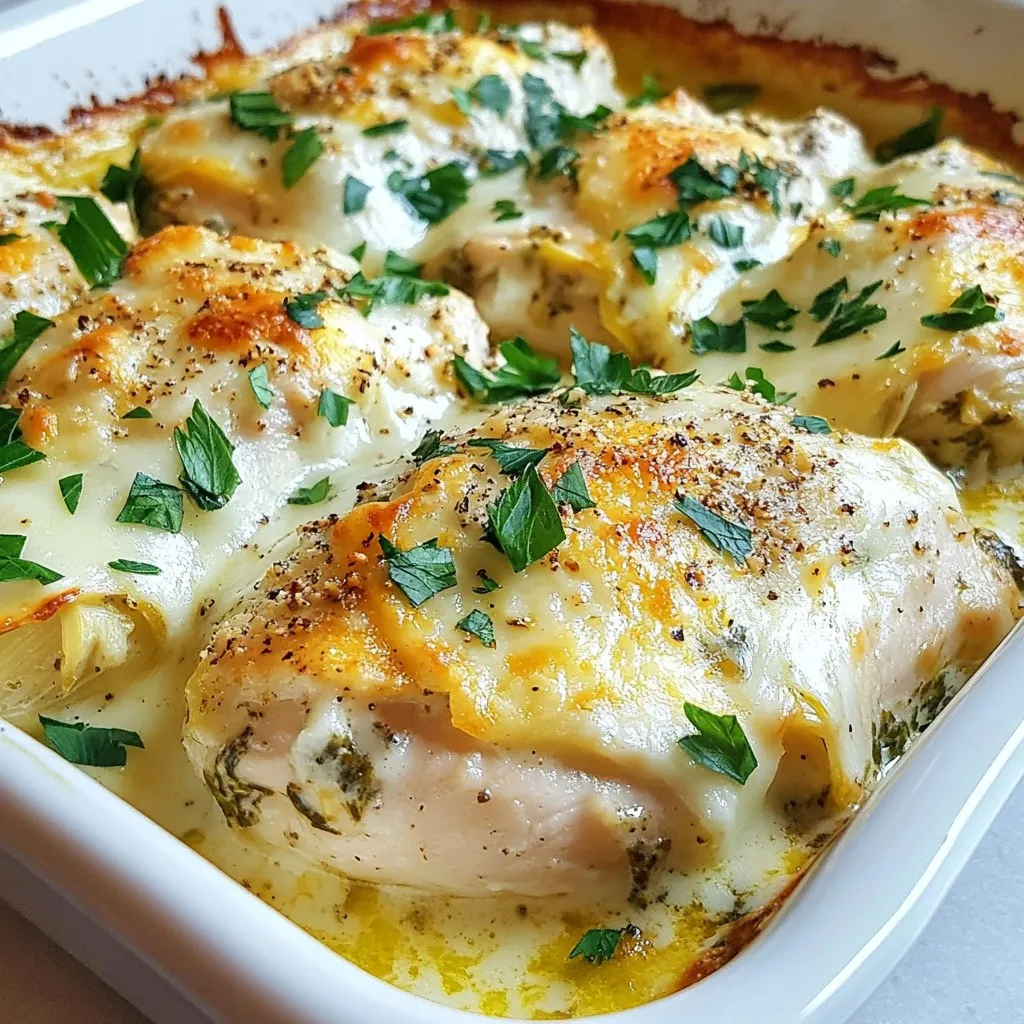 - Versatile Serving Options: This chicken bake pairs beautifully with sides like garlic bread or a fresh salad, adding to its meal appeal.