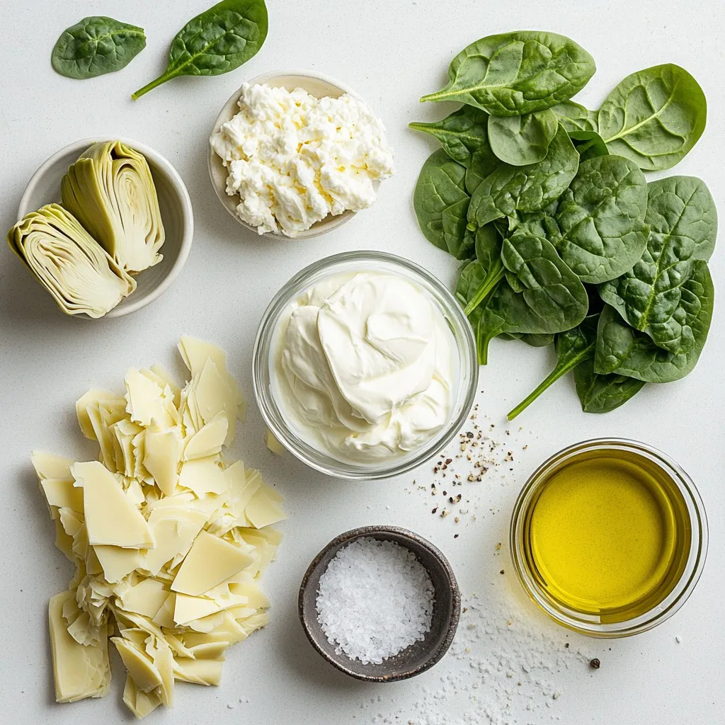 Start by preheating your oven to 375°F (190°C). This step is key for even cooking. While the oven heats, grease a baking dish with olive oil. This helps prevent sticking and adds flavor. In a large bowl, mix the softened cream cheese, sour cream, mozzarella cheese, Parmesan cheese, minced garlic, onion powder, and a pinch of salt and pepper. Stir until smooth and creamy. Next, fold in the drained spinach and chopped artichokes. Make sure they blend well with the cheese mix.