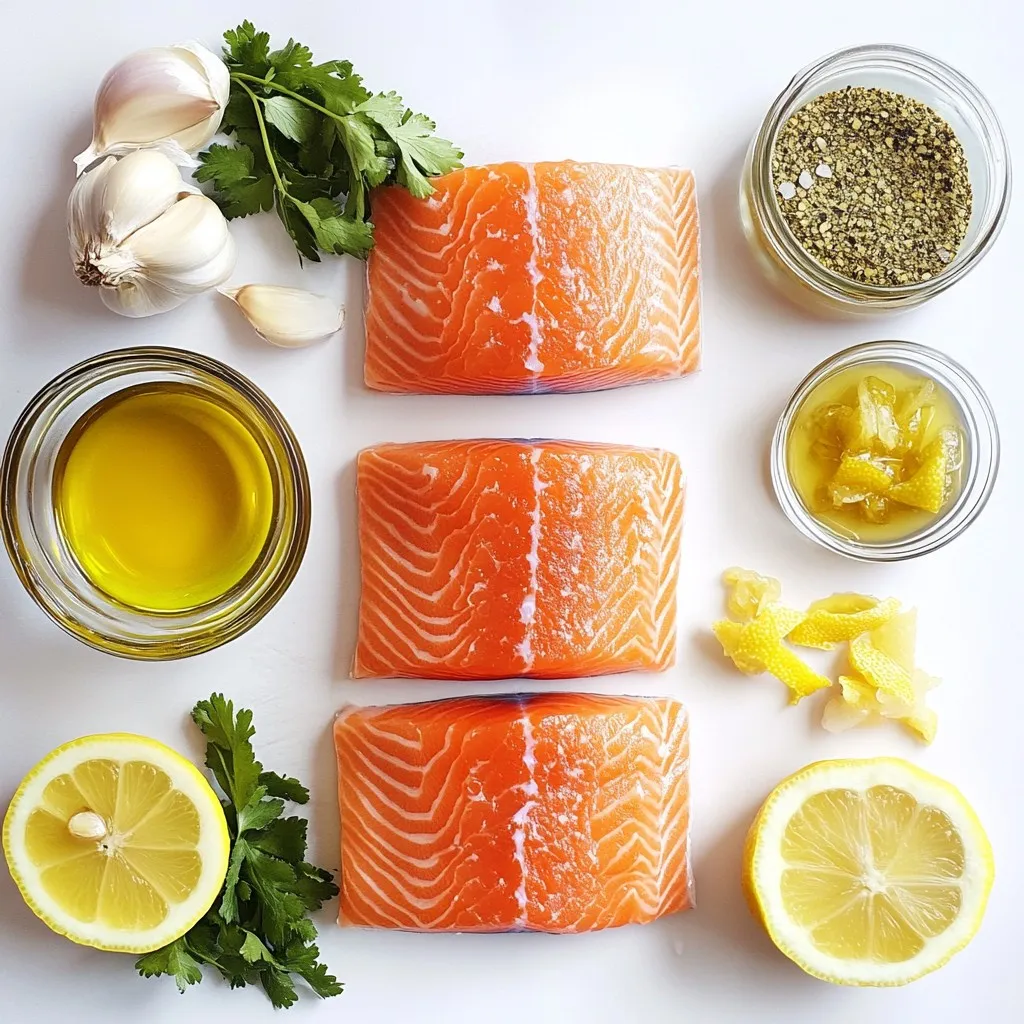 To make zesty lemon garlic salmon, gather these items: - 4 salmon fillets (about 6 ounces each) - 3 tablespoons olive oil - 4 garlic cloves, minced - Zest of 1 lemon - Juice of 2 lemons - 1 tablespoon Dijon mustard - 1 teaspoon honey - 1 teaspoon dried oregano - Salt and pepper to taste - Fresh parsley, chopped (for garnish) Each serving of this dish offers a rich mix of nutrients. Salmon is high in protein and omega-3 fatty acids. This recipe gives you about: - Calories: 350 - Protein: 34 grams - Carbohydrates: 5 grams - Fat: 20 grams - Fiber: 0 grams These numbers can vary based on the size of your salmon fillets and how much olive oil you use. When choosing salmon, look for bright, moist fillets. The skin should have a shiny look. Here are key points: - Smell: Fresh salmon has a clean smell. Avoid any strong fishy odors. - Color: Look for vibrant pink or orange. The color should be even, not dull. - Texture: Press gently. Fresh salmon should bounce back, not feel mushy. - Source: Buy from a trusted fishmonger or market with good reviews. Using fresh salmon makes your dish taste better and healthier. {{ingredient_image_1}} 1. First, gather all your ingredients. You will need: - 4 salmon fillets (about 6 ounces each) - 3 tablespoons olive oil - 4 garlic cloves, minced - Zest of 1 lemon - Juice of 2 lemons - 1 tablespoon Dijon mustard - 1 teaspoon honey - 1 teaspoon dried oregano - Salt and pepper to taste - Fresh parsley, chopped (for garnish) 2. Preheat the oven to 400°F (200°C). This step is key for even cooking. 3. In a small bowl, mix the olive oil, minced garlic, lemon zest, lemon juice, Dijon mustard, honey, dried oregano, salt, and pepper. Whisk until smooth. 1. Take a baking sheet and line it with parchment paper. This makes clean-up easy and helps the salmon cook evenly. 2. Place the salmon fillets skin-side down on the prepared baking sheet. 3. Brush the lemon garlic mixture generously over the salmon. Make sure each piece is well coated. 4. Bake the salmon for 12-15 minutes. The exact time depends on the thickness of your fillets. Look for the salmon to flake easily with a fork and be opaque in the center. 5. Once done, remove the salmon from the oven. Sprinkle freshly chopped parsley on top for a bright finish. 1. For the best flavor, let the salmon marinate for at least 15 minutes at room temperature. This allows the flavors to soak in. 2. If you have more time, you can marinate the salmon in the fridge for up to an hour. Just remember to bring it back to room temperature before cooking. 3. If you want a stronger flavor, feel free to let it marinate longer. Just don’t go overboard; too long can make the salmon mushy. Following these steps will help you create a zesty lemon garlic salmon that is both flavorful and simple. Enjoy cooking! For the best results, cook salmon for 12-15 minutes. The time depends on how thick each fillet is. Salmon cooks quickly, so check it at 12 minutes. It should flake easily with a fork. If it’s still raw in the middle, give it a few more minutes. To boost flavor, add fresh herbs like dill or thyme. You can also sprinkle some red pepper flakes for heat. A splash of white wine can add depth to the sauce. Try serving it with a lemon wedge for extra zing. Don’t forget to drizzle any leftover sauce over the salmon when serving. One common mistake is overcooking the salmon. This makes it dry and tough. Avoid skipping the marinating step; it adds great flavor. Also, don’t forget to line your baking sheet with parchment. This helps with clean-up and keeps the salmon from sticking. Lastly, make sure to taste your sauce before brushing it on the fish. Adjust salt and pepper to your liking. Pro Tips Marinate for Maximum Flavor: The longer you marinate the salmon, the more the flavors will penetrate the fish. Aim for at least 30 minutes if time allows. Check for Freshness: When selecting salmon, look for firm, bright pink flesh and a fresh, ocean-like smell. This ensures you’re getting the best quality. Perfect Flake Test: To check if your salmon is done, gently press it with a fork. If it flakes easily and appears opaque, it’s ready to be taken out of the oven. Garnish Wisely: Fresh herbs like dill or chives can elevate the dish. Feel free to experiment with different herbs to complement the lemon and garlic flavors. {{image_2}} You can change up the flavors of your Zesty Lemon Garlic Salmon easily. Try adding fresh herbs like dill or basil for a different taste. You can swap the dried oregano for thyme or rosemary. Want some heat? Add red pepper flakes for a spicy kick. A dash of smoked paprika can bring a nice depth to the dish. Use your favorite spices to make this recipe your own. If you love grilling, this salmon shines on the grill. Preheat your grill and brush the salmon with the lemon garlic mix. Grill for about 6-8 minutes per side. The smoky taste will be incredible. You can also pan-sear the salmon for a crispy skin. Heat a skillet over medium-high heat and add olive oil. Cook the salmon for about 4-5 minutes on each side, until golden brown. Both methods give you tasty results. What you serve with this salmon can elevate your meal. Steamed asparagus pairs wonderfully. You can also serve it with a fresh salad, drizzled with the leftover lemon garlic sauce. A fluffy quinoa or rice pilaf adds a nice touch too. For a heartier meal, consider roasted potatoes or a veggie medley. These sides complement the salmon and make your dinner more filling. To keep your leftover salmon fresh, let it cool first. Then, place it in an airtight container. It can stay in your fridge for up to three days. Make sure to cover it well to avoid any bad smells from other foods. When you are ready to eat the leftovers, preheat your oven to 350°F (175°C). Place the salmon on a baking sheet. Cover it with foil to keep it moist. Heat for about 10-15 minutes. You can also use a microwave, but it may dry out the fish. If using a microwave, heat for short bursts